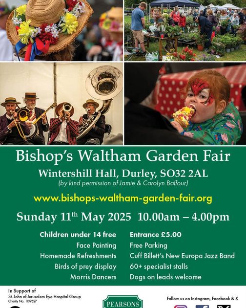 Bishop’s Waltham Garden Fair offers a delightful day out with attractions such as face painting, homemade refreshments, a birds of prey display, Morris dancers, and over 60 specialist stalls. Enjoy free parking and entertainment from Cuff Billett’s New Europa Jazz Band. Children under 14 can enter free of charge, and dogs are welcome on leads.