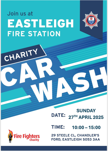 Join us on Sunday, 27th April, from 10 AM to 3 PM at Eastleigh Fire Station for a Charity Car Wash to raise funds for The Firefighters Charity👨🚒