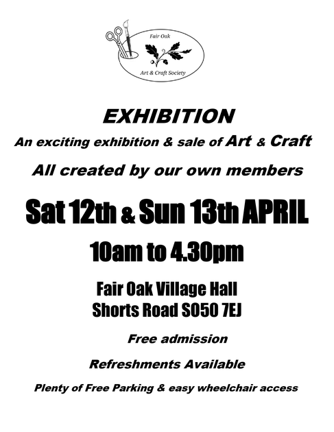 An exciting exhibition & sale of Art & Craft, all created by our own members. Free admission. Refreshments available. Plenty of free parking & easy wheelchair access.