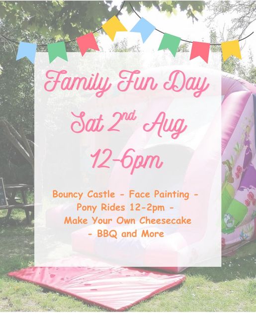 Enjoy a Family Fun Day filled with exciting activities including a bouncy castle, face painting, and pony rides from 12pm to 2pm. Guests can also make their own cheesecake and enjoy a BBQ along with more surprises.