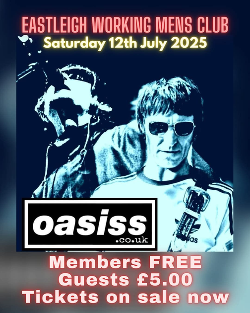 Come join us at Eastleigh Working Mens Club for a night filled with the iconic sounds of Oasis. Get ready to rock out to all your favorite hits from this legendary band performed by Oasiss UK, a top tribute act that captures the spirit of Oasis like no other.