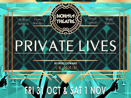 Noel Coward’s timeless comedy of manners, Private Lives is heading on a tour of the UK, starring Dionysus favourites Lauren Whedbee & Robert Tremayne (in parts originally played by Coward and Gertrude Lawrence in the play’s 1930 premiere). They are joined by other company treasures; David Upcraft & Mollie Simpson who are stepping straight into a glittering new production to face the ordeals of married life. Founding member Vicky Newman is back in the directors seat after the huge success of her production of 'The Woman in White' last year.