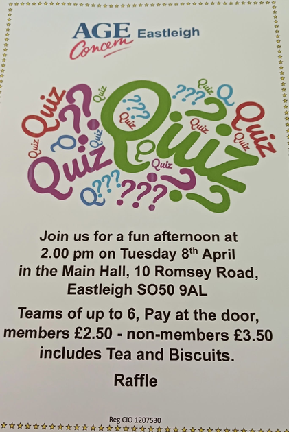 Join us for a fun afternoon. Teams of up to 6, pay at the door. Members £2.50 - non-members £3.50, includes tea and biscuits. Raffle.